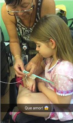 Em uma foto publicada no Snapchat pela atriz Priscila Sol, a Estefânia, podemos ver a atriz mirim tendo umas "aulinhas" de crochê no camarim.